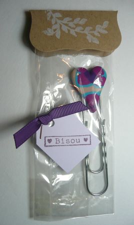 Sophie est une dame qui fait du scrap et que j'adore, je me suis même inscrite à sa newsletter. Je l'ai connue avec les cartes du Togo. Maman et moi nous en avons faites et avec un message qu'elle a mis sur son blog, j'ai vu quelques images où les enfants etaient contents et même les parents seulement avec une canette de soda. Elle m'a envoyé pour mon anniversaire une carte marque page et un trombone décoré avec un coeur fait en pate fimo. (De maman : Je me suis permise de prendre tes photos, car ici le temps n'est pas au beau fixe).